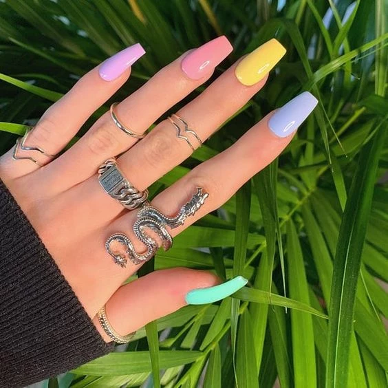 Justo como supo imponerlas Billie Eilish, las uñas en colores neon destacan la mano y destacan con sus llamativos colores, los cuales se pueden lucen en fiestas o eventos nocturnos.