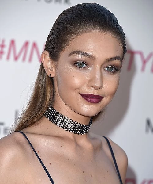 Gigi Hadid quiso solo llevar este look en las raíces y el resto de su pelo al natural, peinándolo todo hacia atrás.