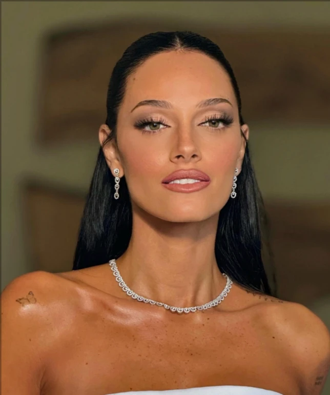 El peinado, de Oriana Sabatini, por Zacarias Guedes, destacó por su elegancia y simplicidad. La actriz y cantante optó por llevar su larga melena oscura, suelta, con un delicado semi recogido con ondas que añadían un toque de romanticismo y naturalidad. La clave de este peinado radica en su acabado impecable y en los detalles que lo complementan.