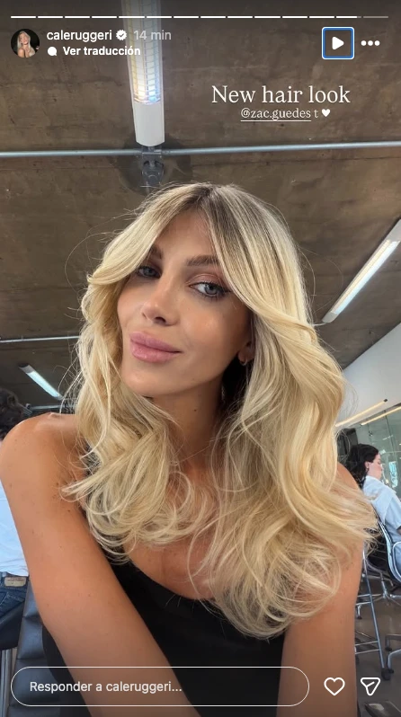 En el caso de Cande Ruggeri, el flequillo mariposa potencia su melena rubia, le suma textura y le aporta un aire más moderno y descontracturado. El resultado es un look femenino, sensual y elegante, ideal tanto para el día como para la noche.