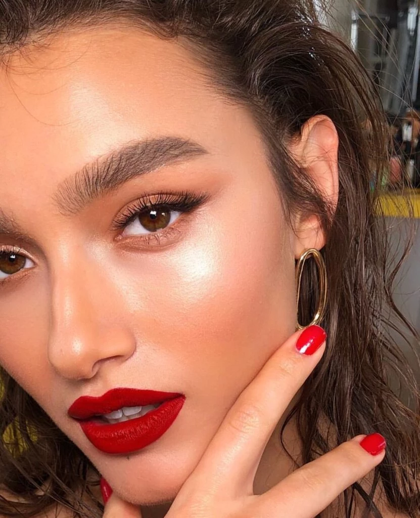 4- El producto que se lleva el protagonismo dentro de de este tipo de maquillaje es el rubor, cuyo tono debe coordinarse con el del labial. Acá también es preferible optar por los cremosos o en barra, que distribuyen el color de manera sencilla y, además, permiten aumentar su intensidad dependiendo el gusto. Se puede optar por el esquema "W blush", que consiste en enfocar el color en los pómulos y nariz como si la piel estuviera ligeramente sonrojada.