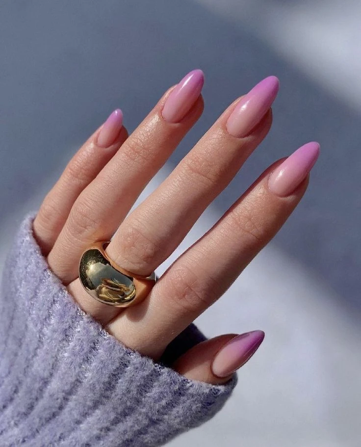 A su vez, el degradado que caracteriza a este nail art está muy bien definido debido a que se realiza con una esponja para que no haya una línea entre el tono fuerte y el tranquilo. Además, así los tonos se mezclan a la perfección y podrás notar el cambio entre el oscuro al claro.