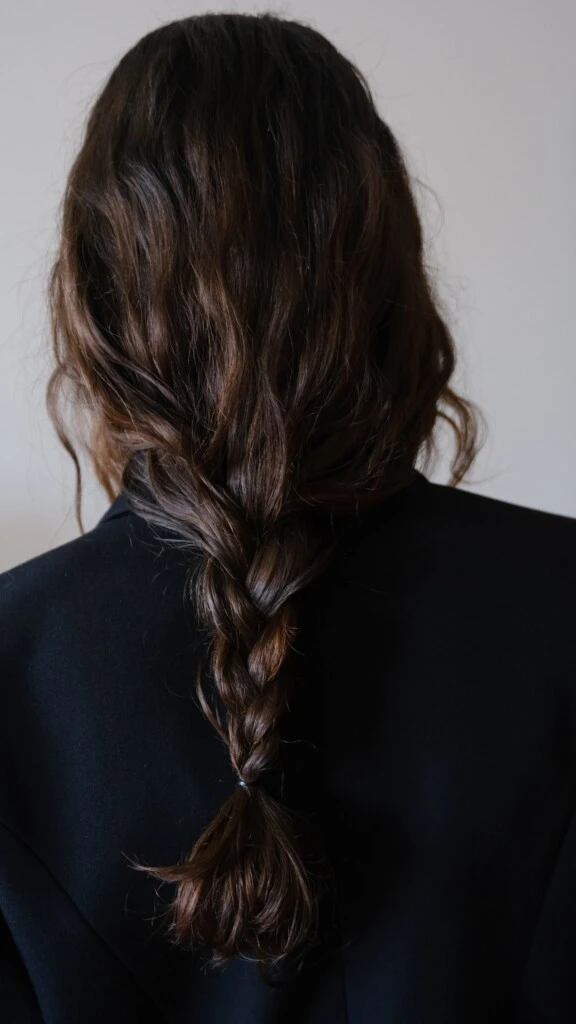 El detalle que eleva todo: una trenza baja, simple, casi como hecha en casa. Ese gesto termina de construir un look descontracturado pero elegante.