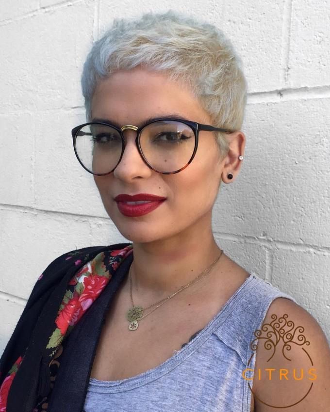 Las mechas de colores le añaden textura visual y brillo al corte pixie.