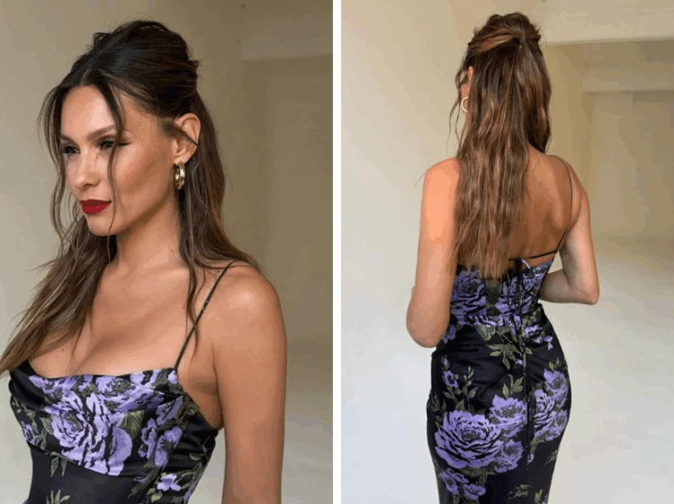 Este tipo de semirrecogido funciona muy bien si tenés mucho pelo y necesitás “bajar” el volumen de la zona frontal sin renunciar al largo. Y es una opción práctica para quienes sienten que el pelo suelto se enreda o molesta cuando bailan o se mueven mucho en una fiesta.