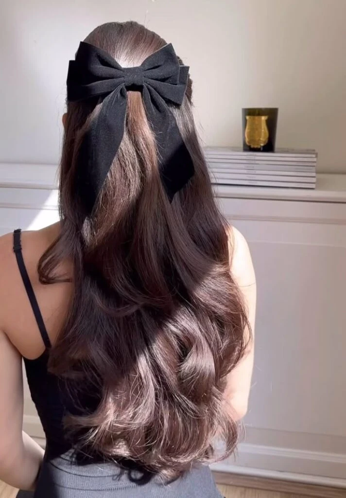 - Paso 3: Toque final: envolvé la gomita con una cinta y hacé un moño o colocá una hebilla con moño armado. Por último, aplicá un poco de laca para que se mantenga prolijo.