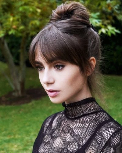 Un claro ejemplo de cómo un flequillo puede favorecer las facciones del rostro es como lo lleva las actrices Lily Collins, protagonista de "Emily en París", serie de Netflix, y Blanca Suárez, exitosa actriz española. Las artistas poseen amplios flequillos que se alargan a los costados y eligen un recogido con mucho volumen.