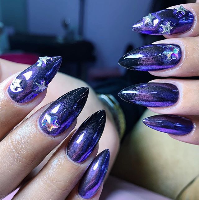 La apariencia resplandeciente de este nail art se combina con la elegancia que genera porque son llamativas y van con cualquier outfit. Pueden ser monocromáticas, combinando colores pasteles; naturales, si preferís que no sean excesivas, podés dejarlas al natural y aplicar el polvo en las puntas; o generar un cielo estrellado, pintando la base de azul o negro y agregándole brillo.