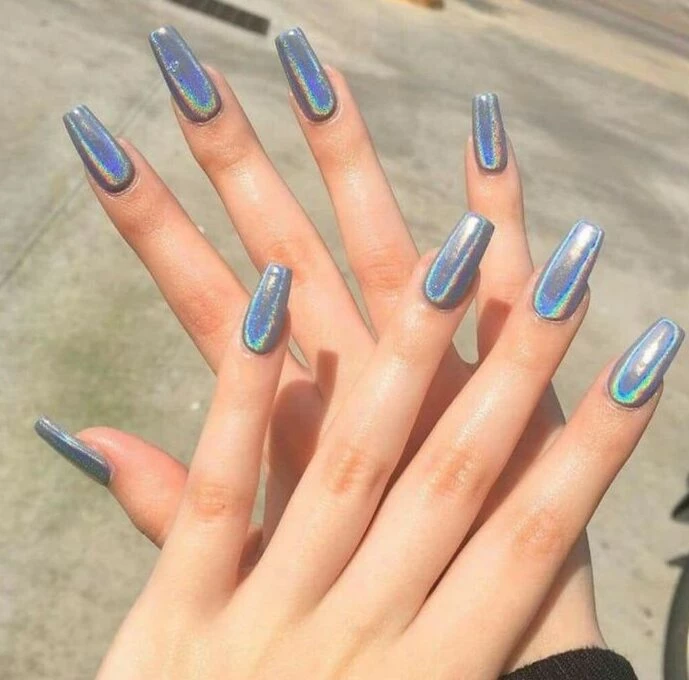 La principal característica de esta tendencia es que refleja los colores del iris, que van cambiando según el ángulo en el que se la mira. Además, va con cualquier tipo de uña, no importa si son cortas, largas, cuadradas o almendradas.