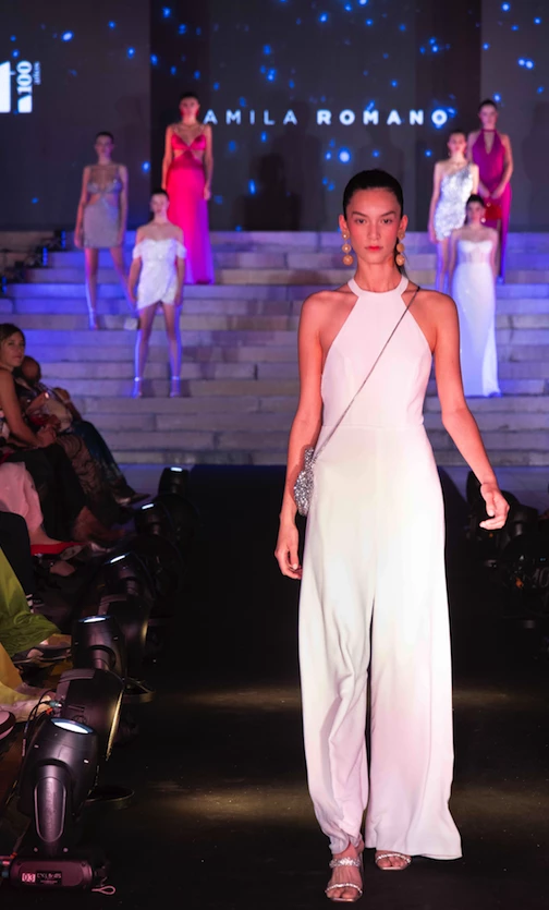 Al comienzo del desfile, Taína Laurino presentó a Smartwater como agua oficial del evento: esa fue la señal para las modelos que se incorporaron desde el público y caminaron la pasarela hasta llegar al punto inicial del desfile y posar con una botella de Smartwater en la mano como parte de la iniciativa de branding.