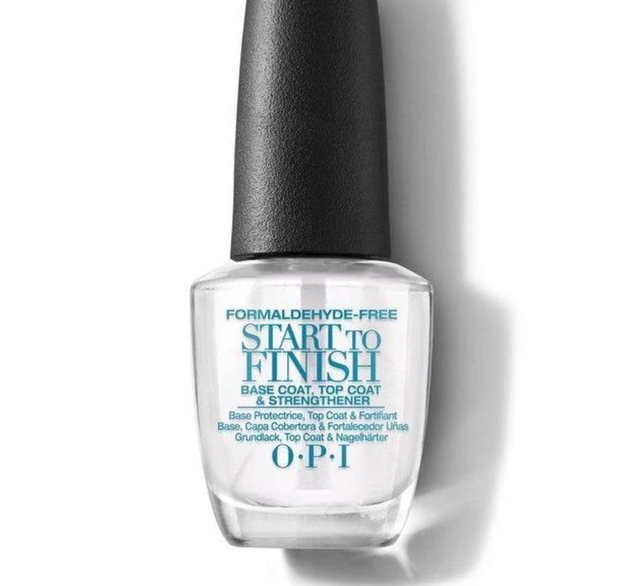 El esmaltado culmina con una nueva capa de Start to Finish (en esta ocasión como capa superior o top coat): se debe aplicar de manera suave, sin ejercer presión sobre la uña y así evitar que el diseño sufra alguna modificación. Sumar algunas unas gotitas de Drip Dry para acelerar el secado del esmalte y, finalmente, aceite de cutícula.
