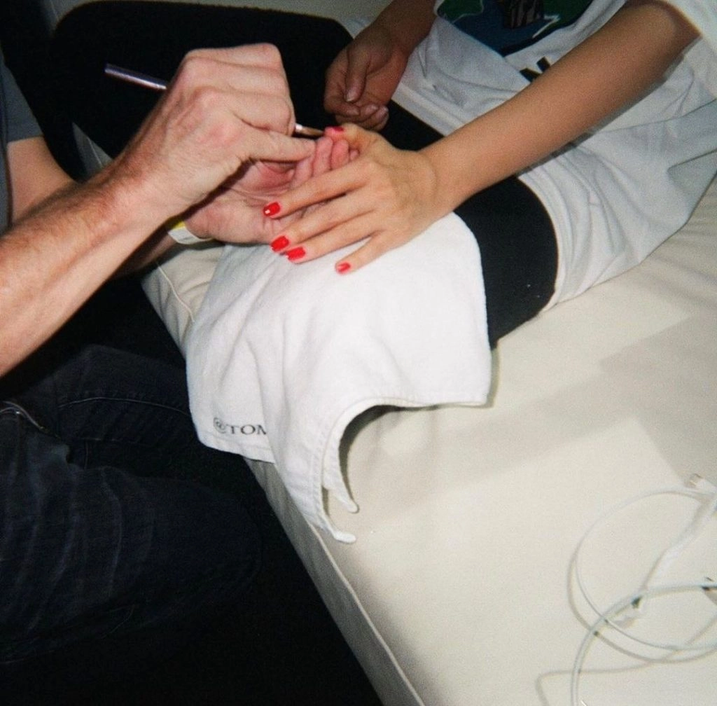 No podemos dejar de mirar sus uñas, obra del artista Tom Bachik, su manicurista de confianza, que casi siempre está detrás de sus manicuras de moda, y es una apuesta segura para cualquier ocasión.