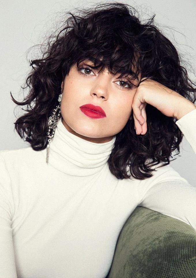 Gracias a que el volumen se concentra a la altura del mentón y de los pómulos, la textura del cabello ayuda a que el corte dulcifique las facciones. Si se planea llevar fleco es necesario considerar el grosor del rulo para considerar el largo.