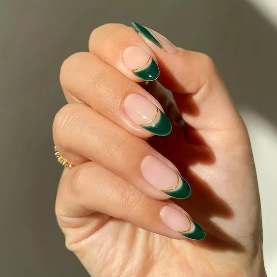 La manicura francesa en color verde brindará un resultado muy atractivo al combinarla con un toque dorado o incluso en otra tonalidad de verde para hacerla diferente.