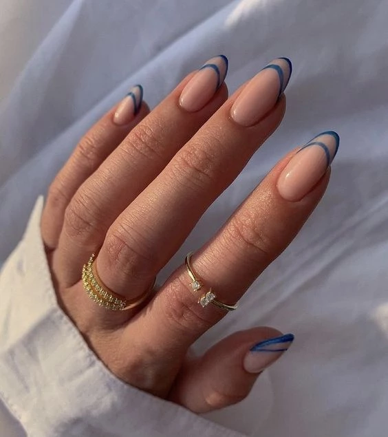 De la misma forma que ocurre con el verde, los detalles azules de la manicura le brindarán un toque neutro a las uñas. Para conseguirlo, se realiza la manicura como de costumbre, pero cambiando el tono blanco por uno azul turquesa, así como en la punta de la uña. Se puede llevar a cabo con el mismo color o con dos tonos para contrastar para resultados sorprendentes.
