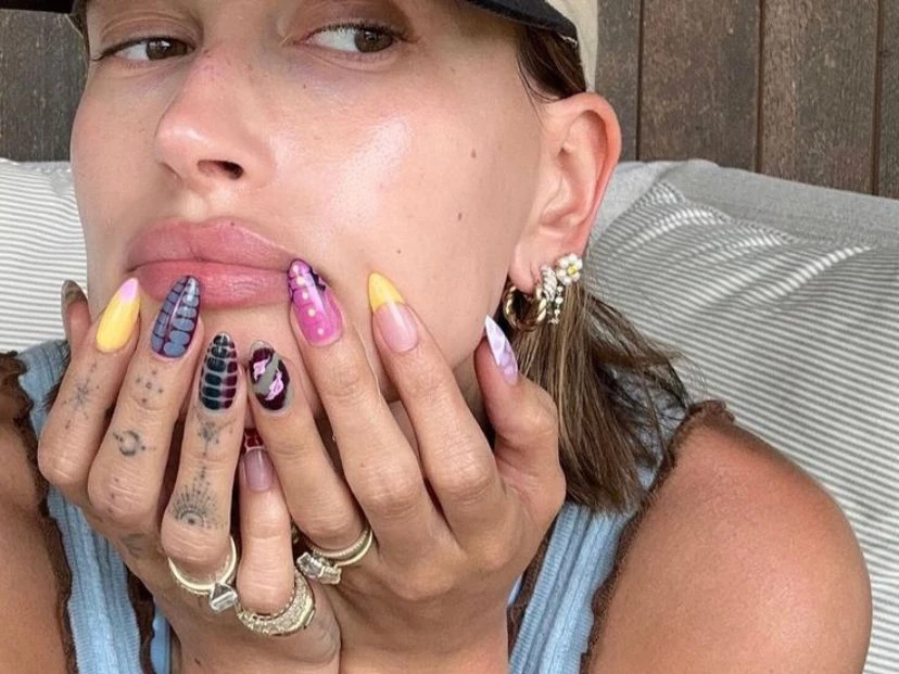 El estilo en uñas que imita la piel de cocodrilo es tendencia y Hailey Bieber lo sabe. La modelo influencer fue más allá y, en lugar de mostrar una réplica de los tradicionales tonos verdosos, lo hizo con una propuesta colorida que se impone en el verano del hemisferio norte.