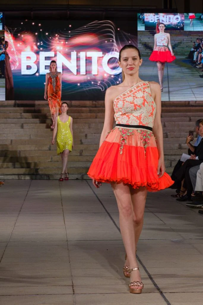 Los creadores de la moda argentina tuvieron su show de cierre de temporada en el Hipódromo de Palermo, y la presentación de Benito estuvo a la medida de su tradición: con espíritu de fiesta y multicolor. Las mejores fotos de su show.