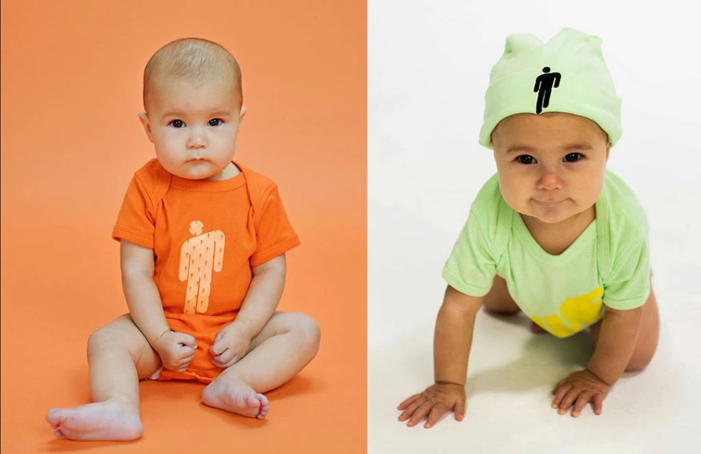 El placard de Billie Eilish Kids incluye remeras, pantalones, medias, gorras y bodies para bebés. Las prendas de la colección están disponibles –entre 20 y 60 dólares- en su tienda online y todo indica que será un éxito entre buscadores de “regalos diferentes” durante las Fiestas que vienen.