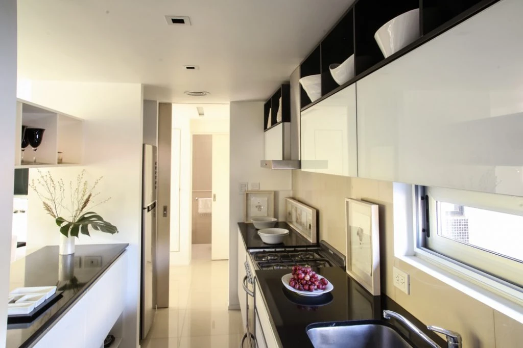 La arquitectura y diseñadora de interiores Karina Vinocur decoró el departamento de una torre con un juego de blanco y negro como protagonistas.