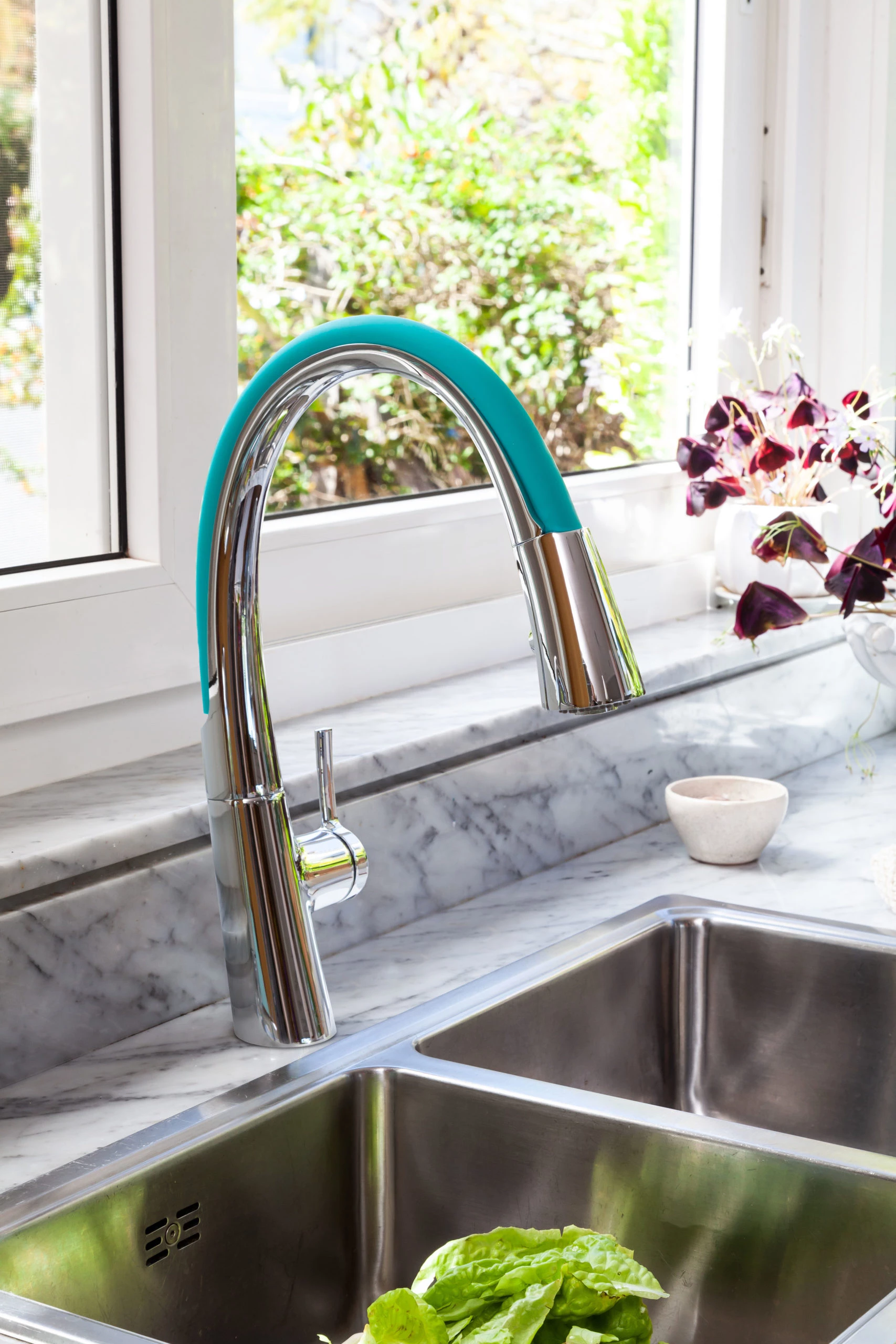 Por eso, una de las tendencias que está en alza para este 2023 son las cocinas con rociador extraíble, en donde se mezcla a la perfección estilo con funcionalidad. Pero cuando llega el momento de definir que tipo de grifería se va a instalar, es difícil, ya que ocupa un rol fundamental en la cocina, puesto que marca y define la estética del lugar.
