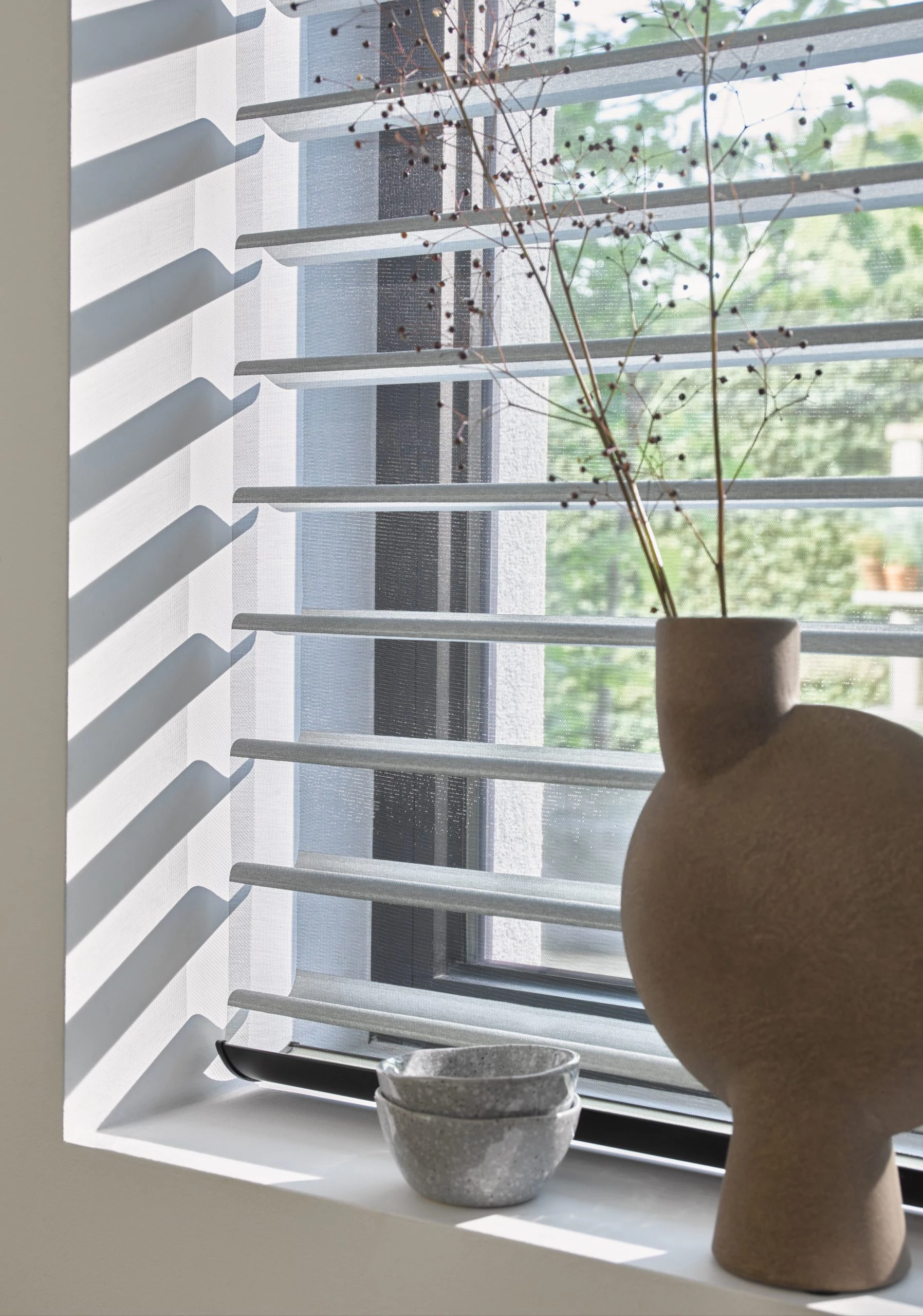 Una de las opciones que ofrece la marca son las cortinas Nantucket, un modelo diferente que viste tus espacios y de los más exclusivos de la línea Sunset. Además, su innovador diseño está compuesto por láminas horizontales de tela suspendidas entre dos velos traslúcidos, que tamizan la luz, generando ambientes muy elegantes y cálidos. Y de acuerdo a su posición, permiten mantener las visuales o generar privacidad total.