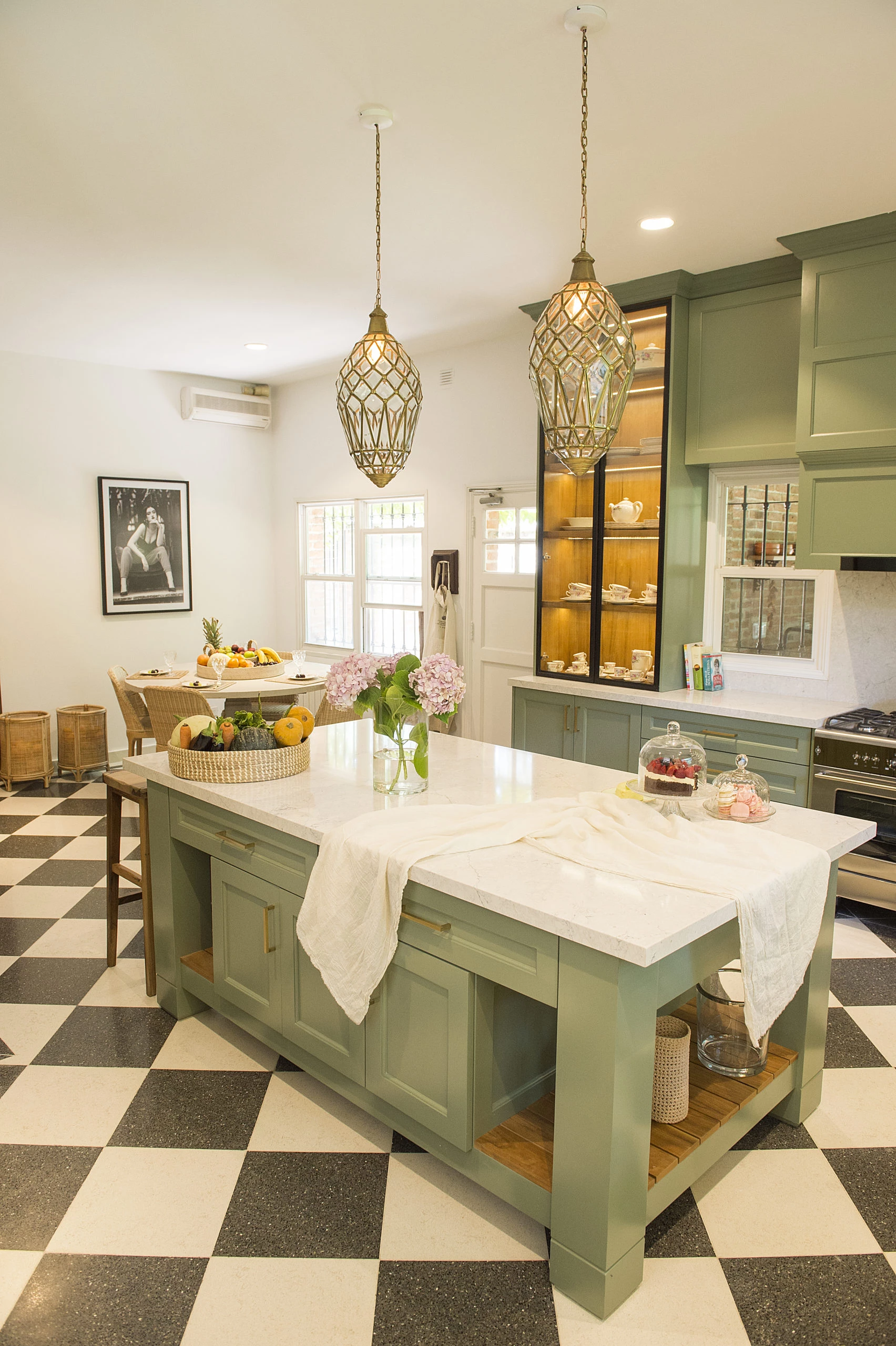 Otras reformas que hizo en su cocina fueron que los volúmenes de las alacenas lleguen hasta arriba, para aprovechar mucho más el espacio, y en esa búsqueda también la diseñadora instaló una isla central, moviendo su mesa comedor hacia un rincón, logrando evitar espacios muertos en el ambiente e involucrando a todos los objetos en la dinámica de la cocina.