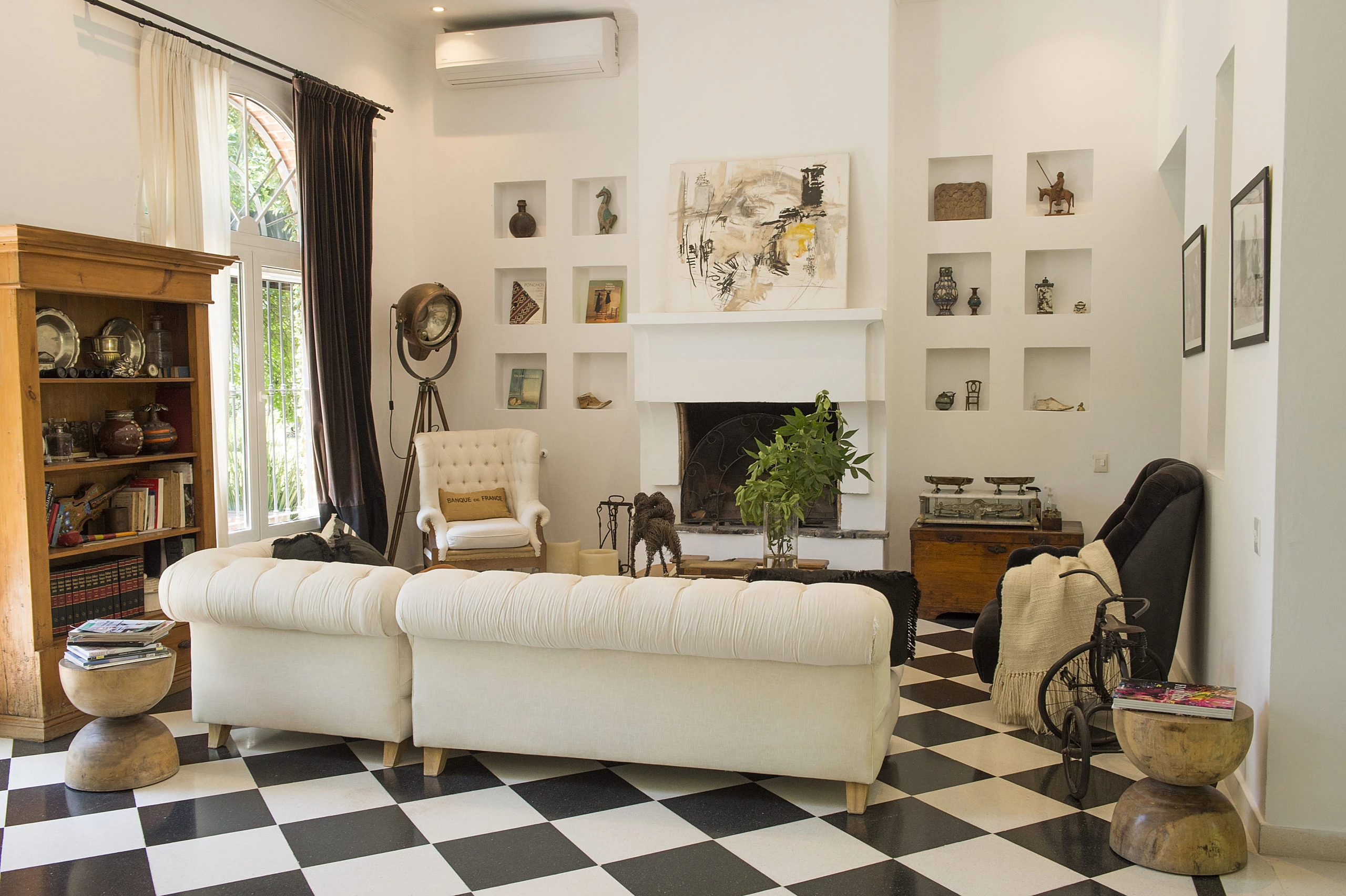 Hace 8 años López Monzón acompañó a un cliente en la búsqueda de una casa en Pilar, para instalarse, que sea sobre todo en un lugar tranquilo, lejos del ruido, y lo que encontró fue un hogar amplio, de buena construcción, mucho verde y un estilo propio pero con poco mantenimiento y con la estructura venida abajo. Aunque las condiciones no eran las ideales, algo de esa casa atrajo a la diseñadora, qué tiempo después volvería a visitarla, pero en este caso para sí misma, ya que su cliente no estaba convencido.