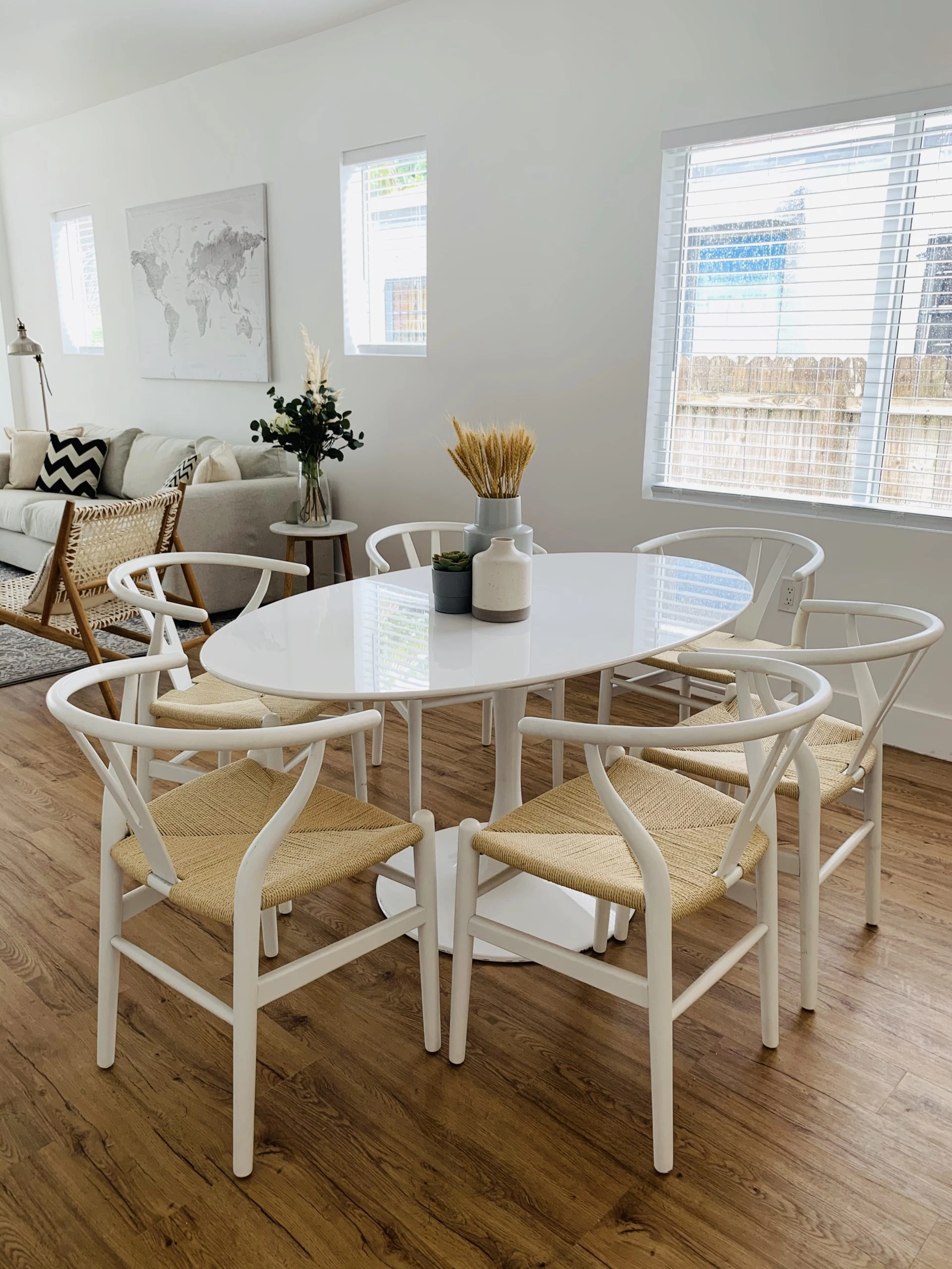 El proceso de Home Staging en una casa vacía o vivienda nueva, implica la escenificación con muebles, cuadros y accesorios para mostrar la funcionalidad de los espacios más relevantes. En este proyecto que nos muestra Laura, se ambientó la casa priorizando una paleta de colores claros y neutros, tanto en muebles como en los cuadros, textiles y objetos. Teniendo en cuenta los principios del diseño biofílicos, White Interiors incorporó el uso de materiales nobles, como la madera, cueros, tejidos naturales. Así también, con la intención de recrear un poco de naturaleza, sumaron plantas para darle toques verdes y un recorrido interesando que pueda ser percibido por todos nuestros sentidos.