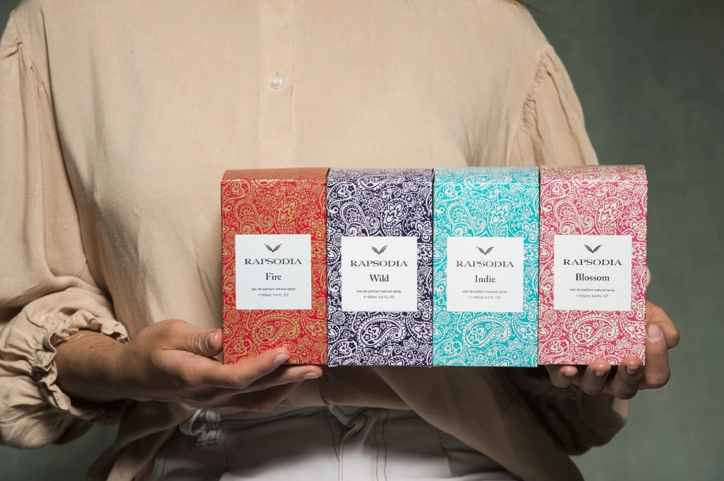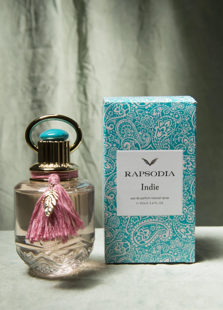 Indie fue el primer lanzamiento de Rapsodia dentro del universo de fragancias y tuvo lugar en 2019. La esencia de la rosa absoluta y del jazmín, que se mezclan con las notas de cítricos italianos, sándalo y cedro, hacen de Rapsodia Indie una fragancia versátil, moderna, femenina y única.