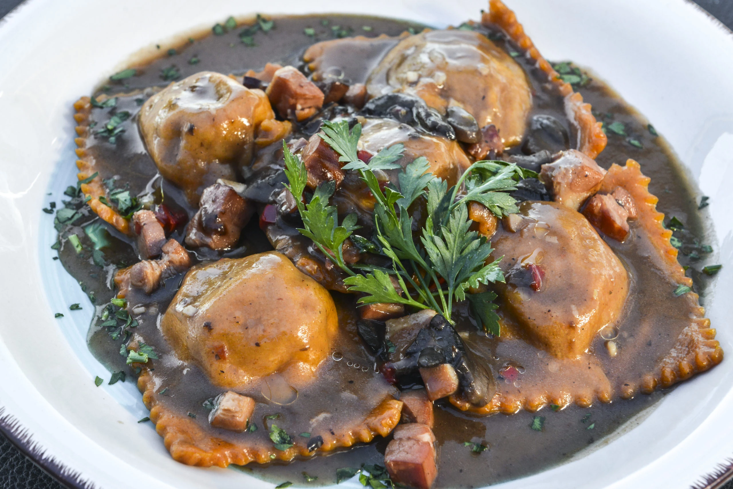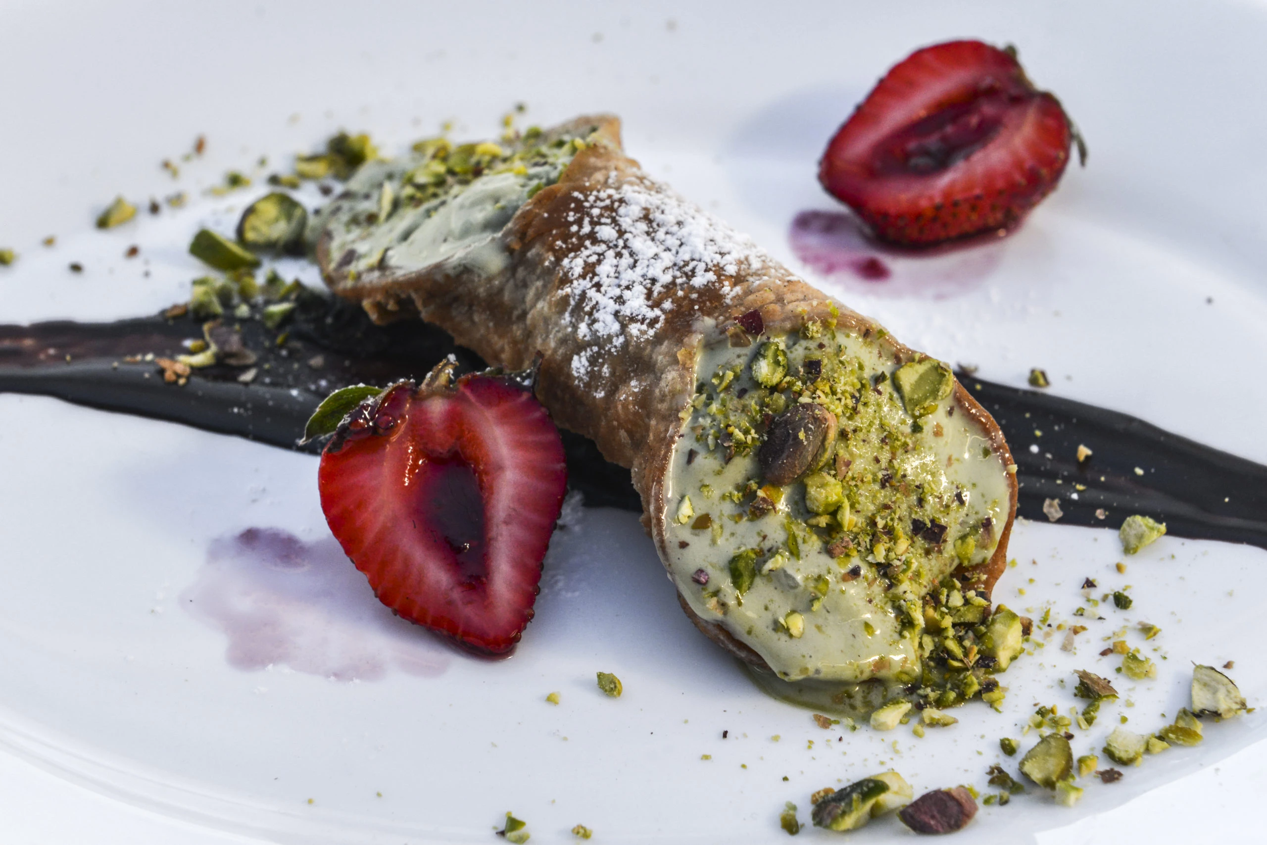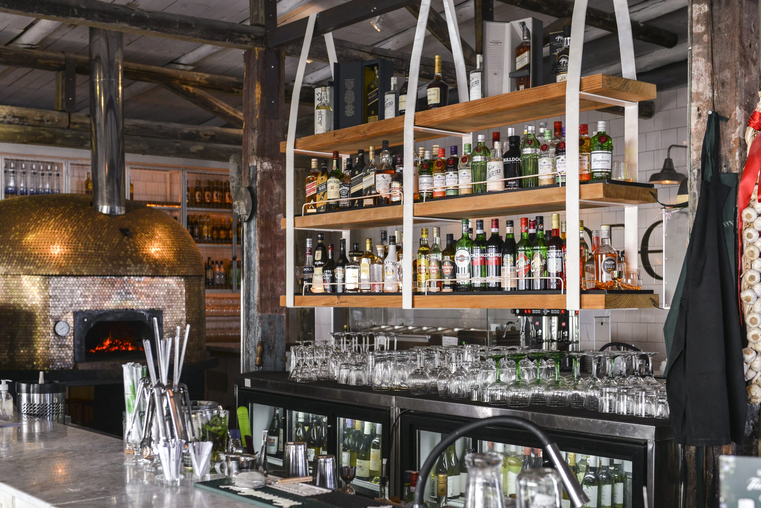 Pasta fresca hecha en casa como la lasagna, los gnocchi y pasta rellena son los platos que destacan. Además, los panificados y la pizza estilo napolitana son elaborados en el icónico horno italiano revestido con más de 24.000 monedas. También es importante destacar que el concepto de la gastronomía ítalo mediterránea se destaca por el puerto y la pesca fresca de todos los días, que puede ser grillada o acompañadas de salsas sugeridas por el chef, como puede ser la amalfitana.