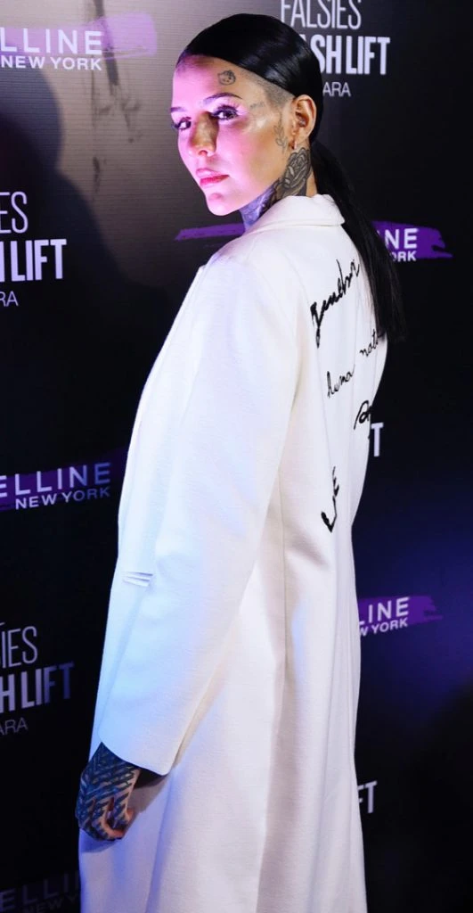 Cande Tinelli llamó la atención en el evento lanzamiento de una nueva máscara de pestañas de Maybelline New York. Ella se vistió con una remera negra de terciopelo negro y de un solo hombro, un jean y unas bucaneras, pero para levantar el look le sumó un tapado largo color blanco con letras en negro en la espalda.