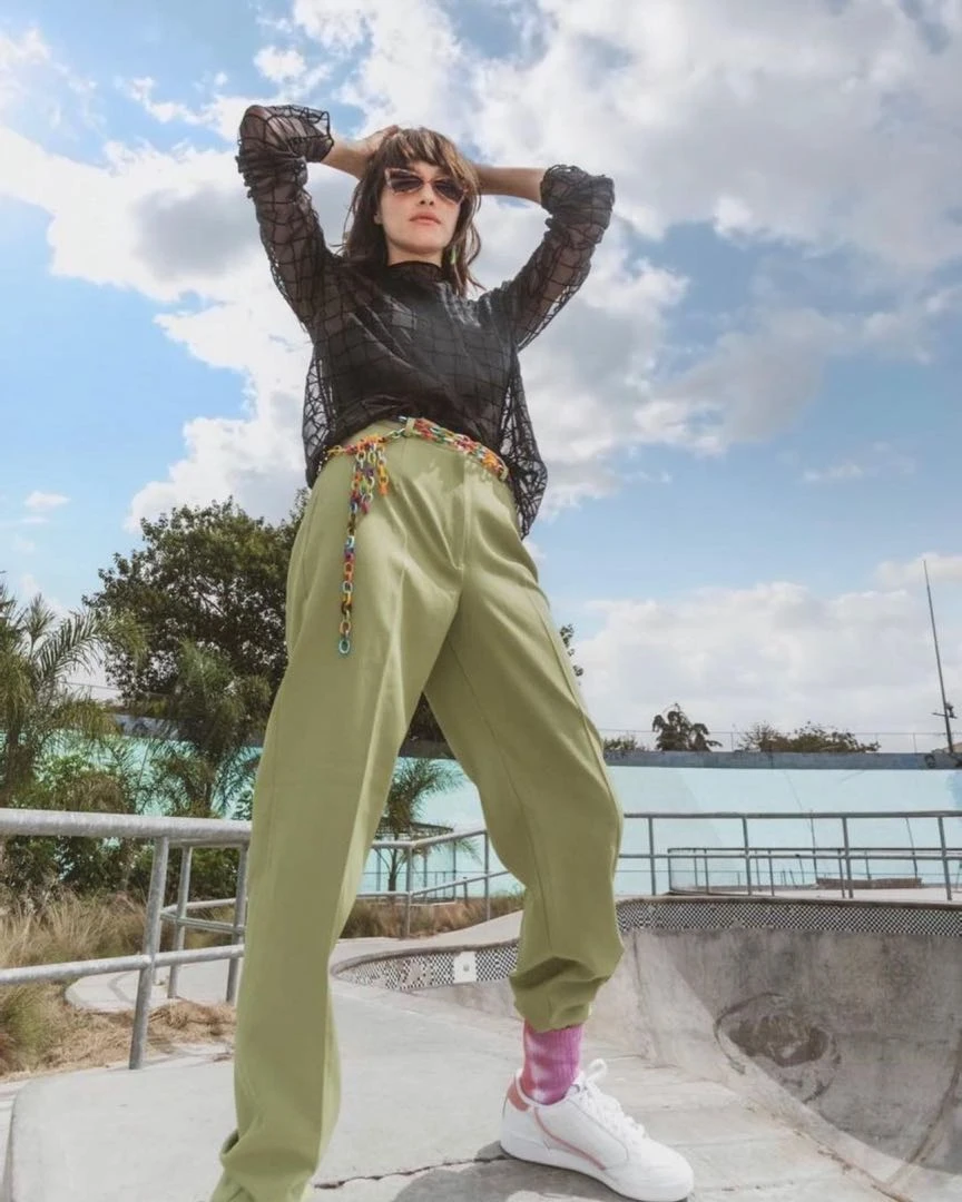 Recientemente se mostró en sus redes con uno de los items de la temporada: el slouchy, un pantalón de cintura alta, fruncida, que se angosta en las botamangas. Dicen los expertos que es la actualización del baggy, que fue furor en los ochenta.