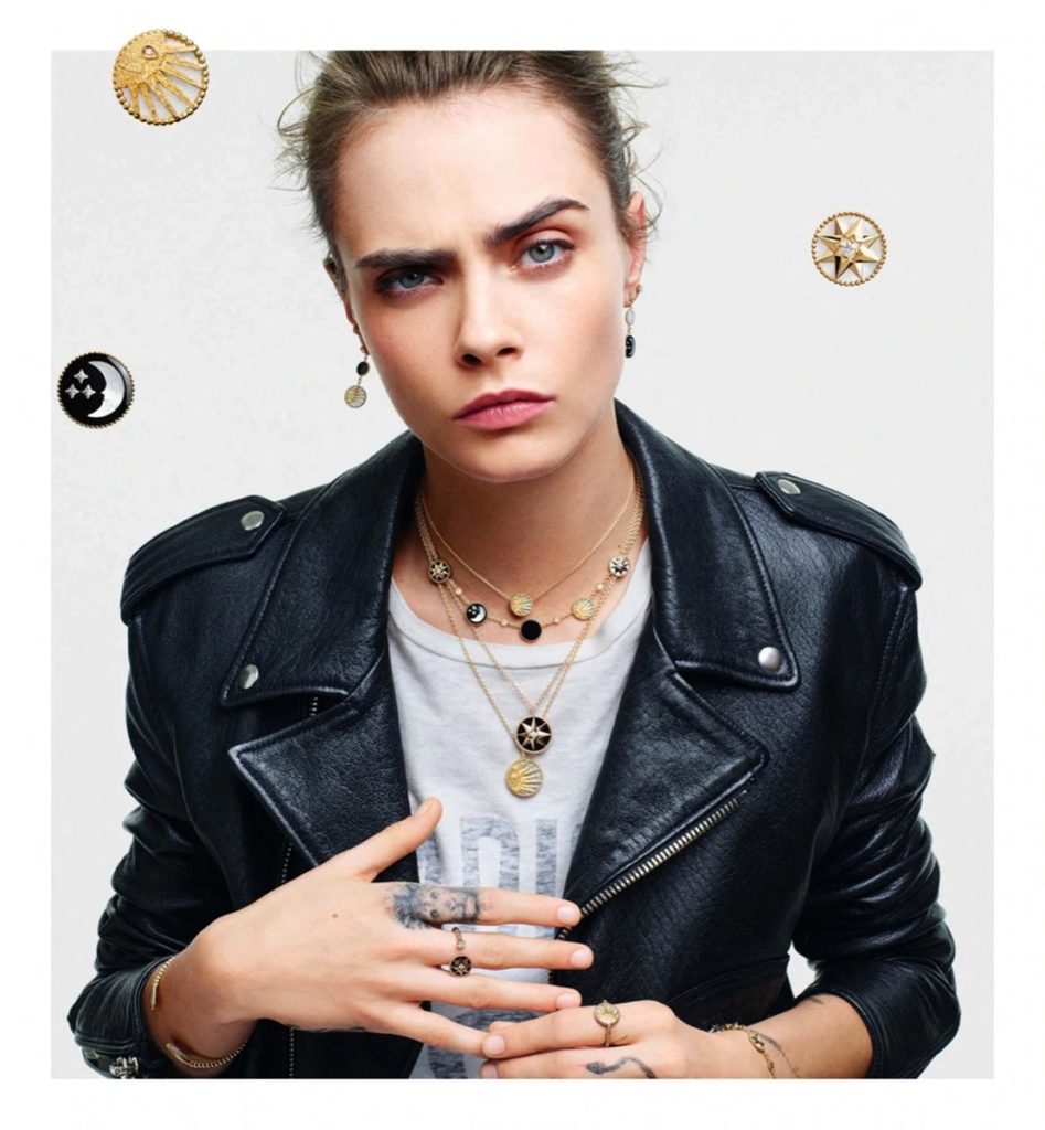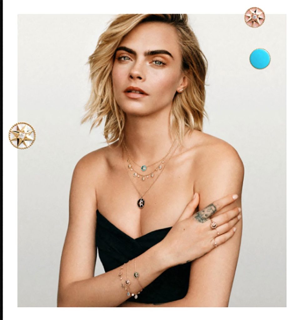 la súper modelo Cara Delevigne es la imágen de la nueva campaña Dior Jewerly 2020.