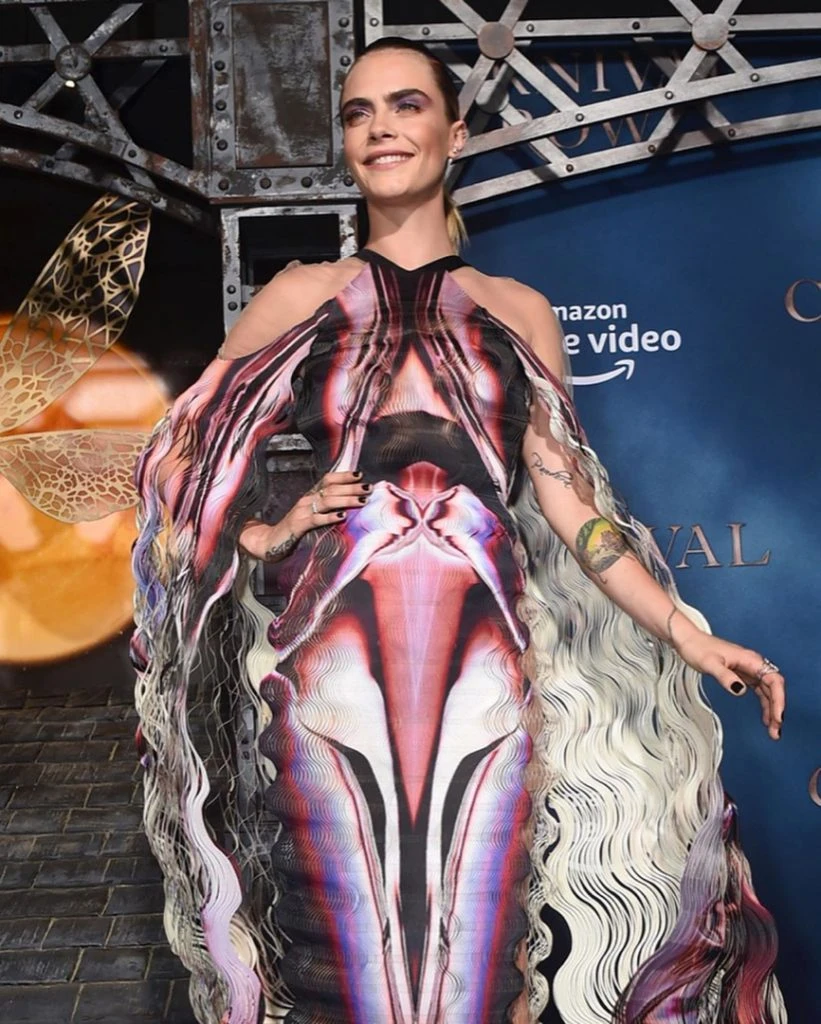 Con un peinado semi recogido, un make up que remarcaba la mirada en un intenso negro y un naked dress bicolor, Cara Delevingne sorprendió en la red carpet de la premiere en Berlín.
