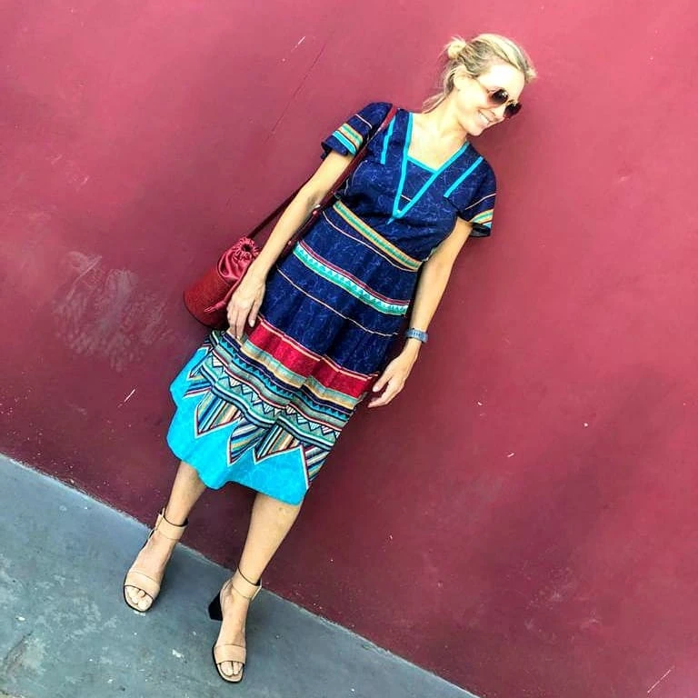 Carla Peterson eligió un vestido vintage y compartió una foto en su cuenta de Instagram. Divertida posó en una improvisada foto jugando al street style.