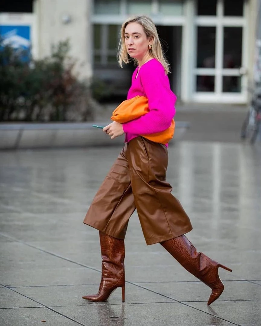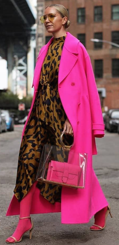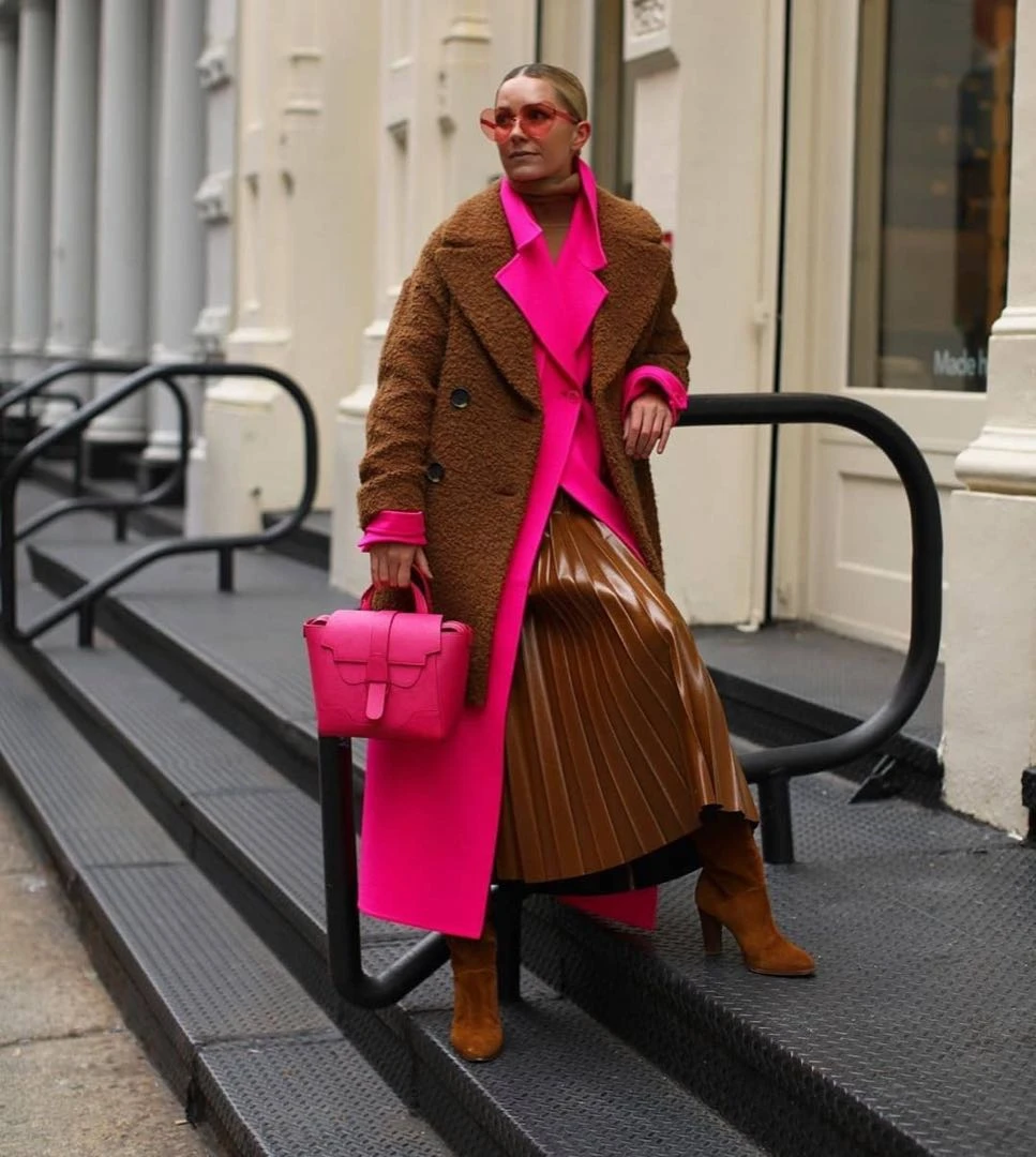Jugadísima y sólo para atrevidas, esta combinación no es nada fácil. Nunca hubiéramos imaginado que el color fucsia se podía llevar con el dulce de leche, tono hit de esta temporada. Pero si la moda dice que es tendencia... Allá vamos. Y Carla fue por la mezcla cromática más osada del año.