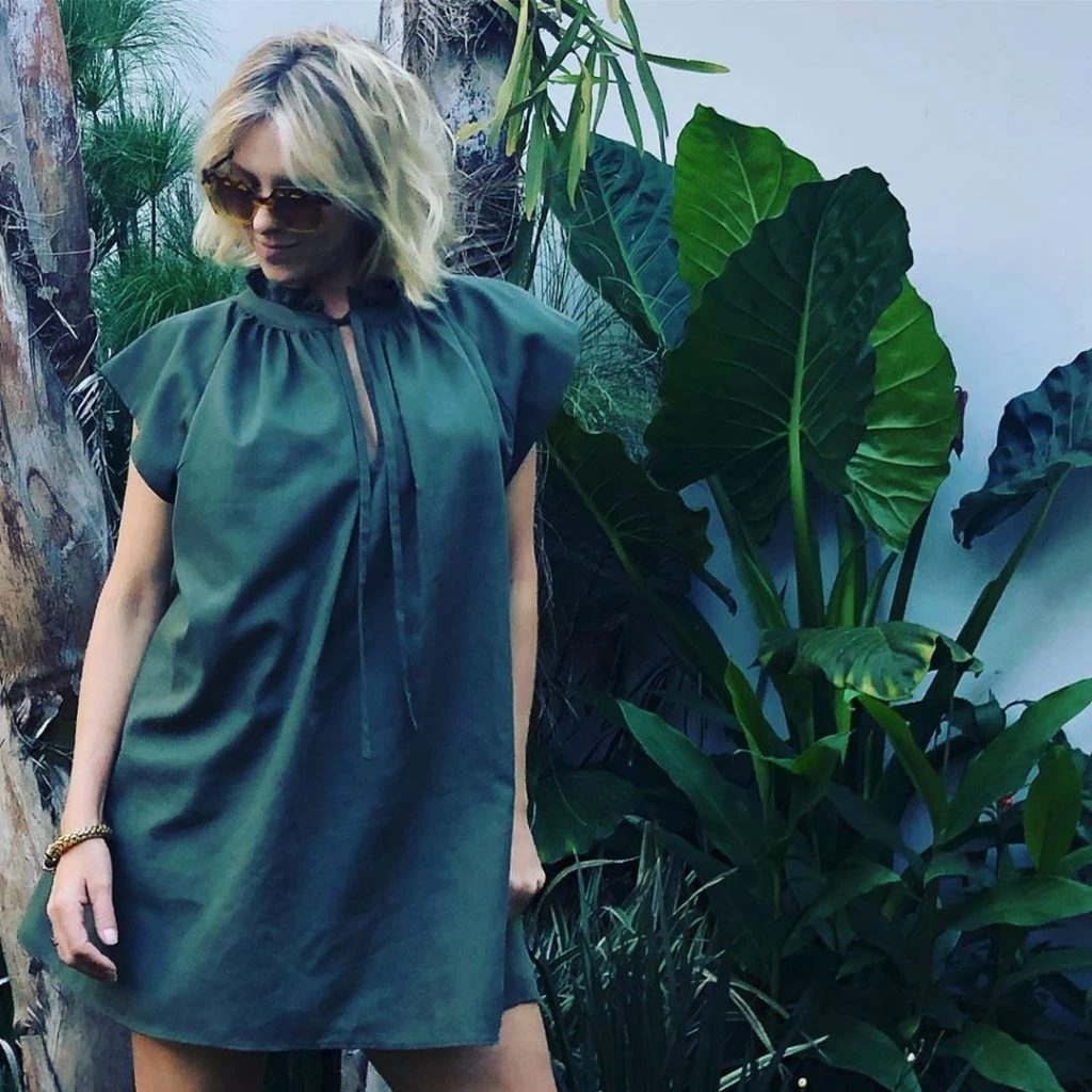 La actriz posteó una foto en el jardín de su casa llevando una prenda versátil que permite lookearte como si fuera un mini vestido o una blusa.