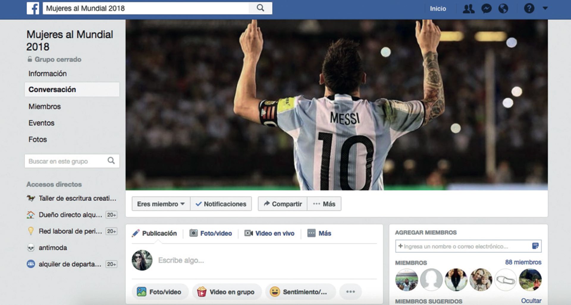 Con casi 90 miembros (todas confesas futboleras de distintos puntos del país), el grupo de FB Mujeres al Mundial 2018 palpita fuerte desde hace meses. “¡Hola, chicas! Acá estoy empezando a planificar, un poco tarde pero bueno... Tengo esperanzas de poder conseguir alguna entrada. ¿Cómo hacen ustedes con el alojamiento?,¡No sé cómo organizarme!”, pide auxilio en el muro María Eugenia Staricco.