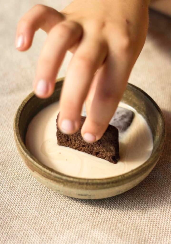 Luego remojá las galletitas durante unos 10-15 minutos en leche (de almendras, vaca, coco, etc.)