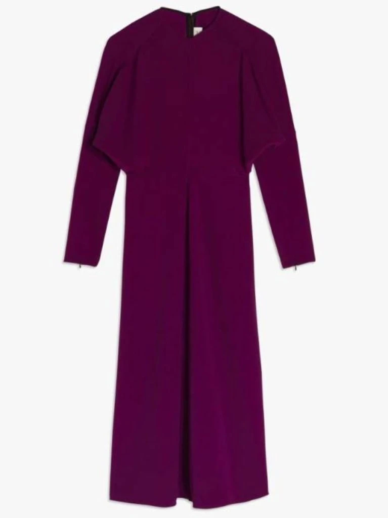 El diseño pertenece a la nueva colección de la exSpice Girl y tiene una morfología que la reina de Holanda siempre elige para destacar su silueta: largo midi, mangas largas voluminosas y corte en la cintura.