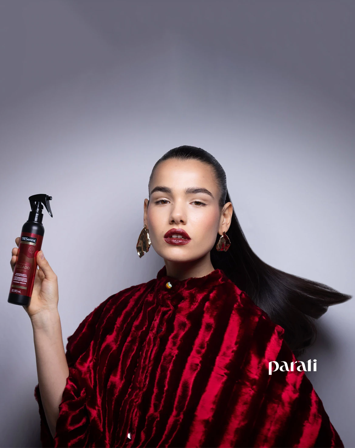 La tendencia Cherry red con la solución para el frizz. TRESemmé se suma a la tendencia Cherry con su nuevo coat spray sellado antifrizz, un aliado ideal para blindar tu look en los días de humedad. Por hasta 72 horas, este producto forma una capa protectora que impermeabiliza el pelo contra la humedad para que puedas lucirlo con cero frizz en cualquier ocasión.