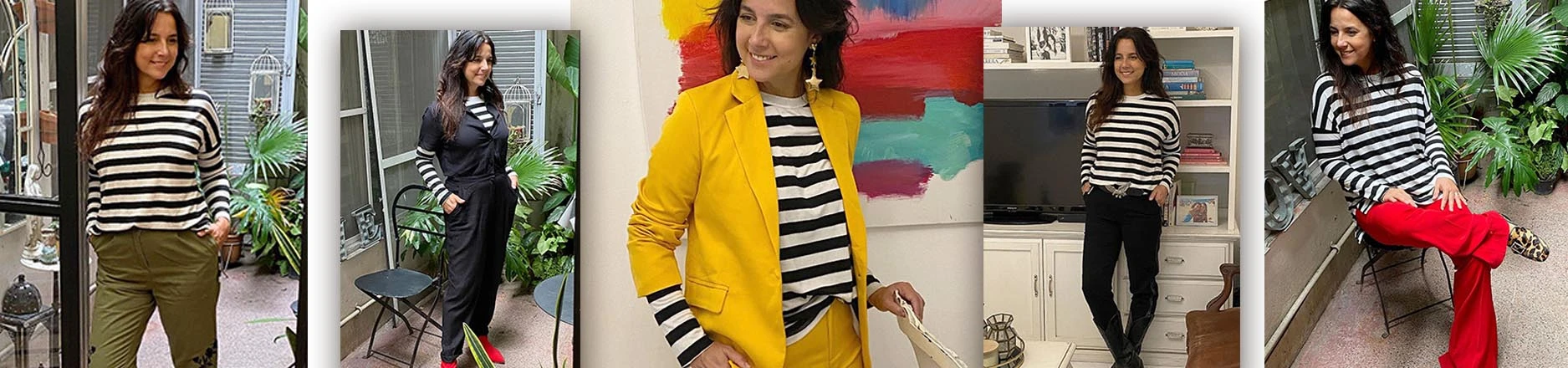 La remera rayada en blanco y negro es un básico que no te puede faltar en el guardarropas. Por su carácter atemporal la podés llevar en verano o en invierno.