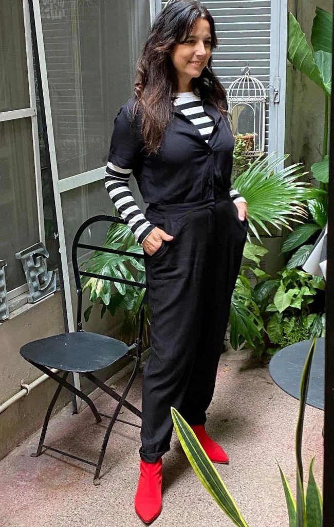 Rescatá el mono negro de tu guardarropas y lleva la remera debajo de el. Si el mono es sin mangas o tiene mangas cortas, mucho mejor, así se ven las rayas.