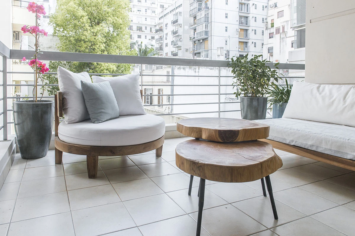 El balcón es protagonista de la casa y de la experiencia de vacaciones en un departamento en la ciudad.