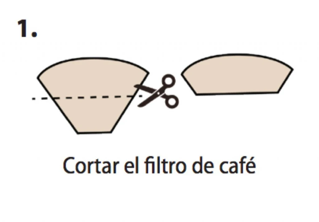 - Paso 1: Cortá el filtro de café como indica el dibujo.