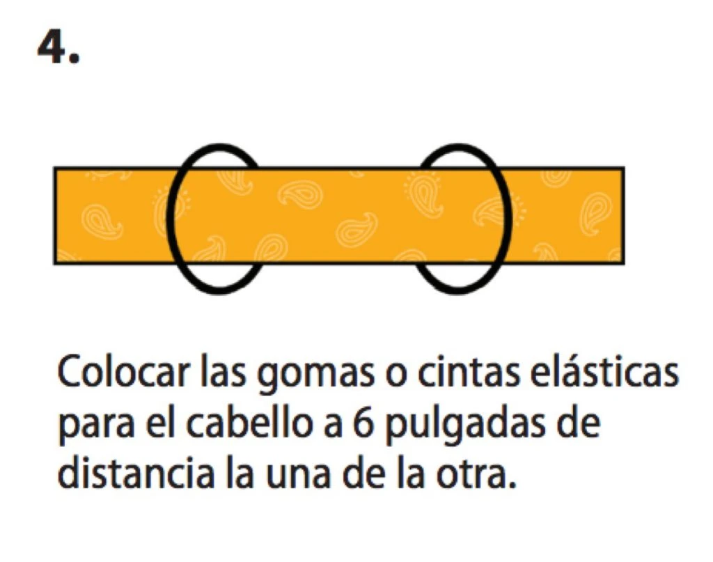 - Paso 3: Colocá las gomas o cintas elásticas para el pelo a 15 cm de distancia la una de la otra.