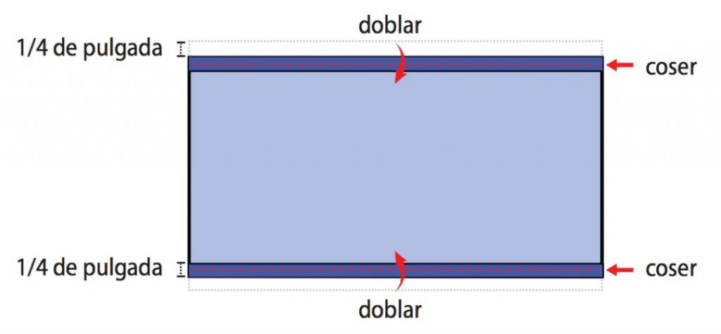 - Paso 3: Hacé un dobladillo de 1 cm en la capa doble de tela a lo largo de los bordes cortos y coselo.