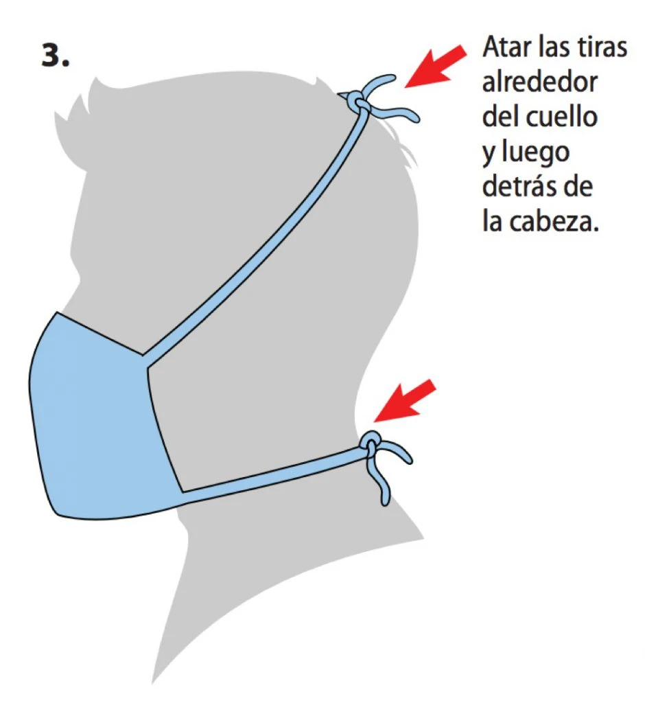 Importante: No se deben poner cubiertas de tela para la cara a niños pequeños menores de 2 años, ni a personas con problemas para respirar, o que estén inconscientes o incapacitadas, o que de otra forma no puedan quitárselas sin ayuda.