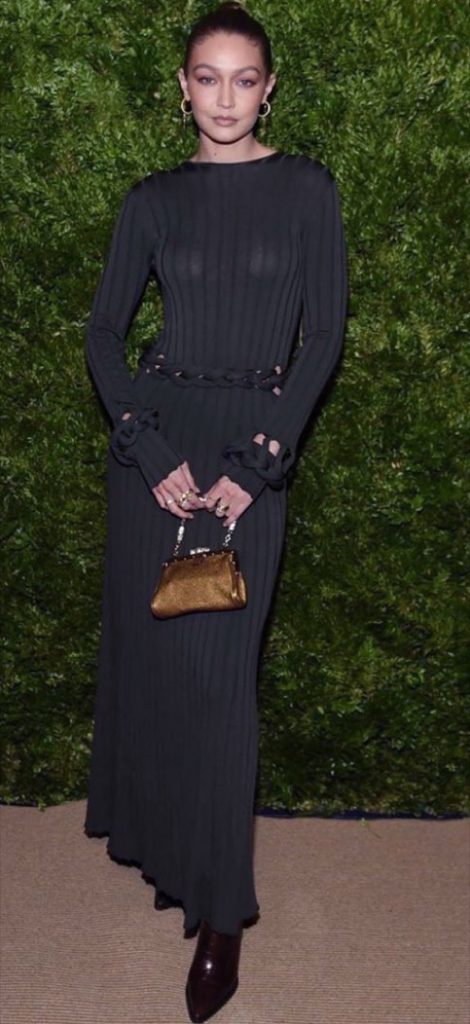 - Con manga acampanada. Es otro ítem de moda y le suman estilo al vestido como en este diseño de Gucci, largo hasta los pies, con pequeña abertura y cuello tipo bote.