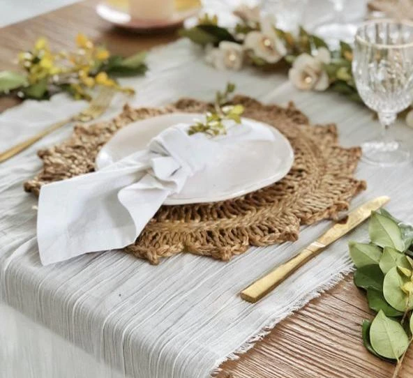 - 1. Poné un camino o mantel liso abajo, y arriba individuales o caminos tejidos o de fibras naturales: genera textura y calidez.